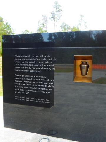 This urn holds sacred soil from the April 9th, 1917 battlefields of Vimy Ridge, soil that symbolically