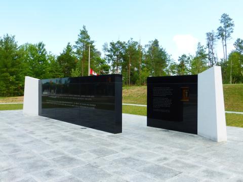 The Borden Legacy Park has three distinct pieces that serve to commemorate CFB Borden's past and inspire the future. First, a forty-foot long and seven-foot high white and black granite wall, is a tribute and inspiration to each and every member of the Canadian Armed Forces that passes through the CFB Borden gates. A six-foot wide path separates the two sections of the wall to allow passage between. A berm directly behind the granite walls is meant to represent Vimy Ridge itself. The wall also encases an urn, in which the sacred soil is held. The promise of General Sir Arthur Currie to his troops is etched into the wall that holds the soil.