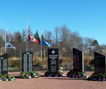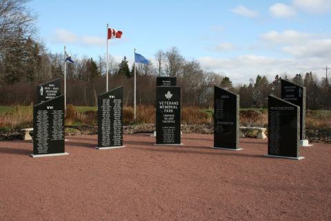 When local doctor Karen Ewing returned home after seeing WWI and WWII battlefields and memorials in Europe, she felt strongly that, since many people would not be travelling to Europe, there should be a memorial in Bass River. Dr. Ewing began with a letter campaign to all levels of government, as well as companies, organizations, and individuals that might be willing to donate funds or materials for such a park. She then approached Dominion Chair Co, a local company to ask for a piece of land that had remained vacant for years in the heart of Bass River. The memorial park is dedicated to remembering, honouring, and celebrating all men and women who served of are serving in Canada's military in conflicts past and present.