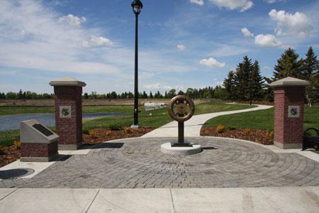 Bedford Basin was dedicated in memory of the original Bedford Basin situated in Halifax, Nova Scotia by the Canada Lands Company on January 16, 2008, as part of their redevelopment of Edmonton’s former Canadian Forces Base (Griesbach Barracks).