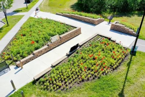 Buffalo Park is named in honour of the nine Canadian Forces members killed in a Buffalo aircraft over Syria in 1974. This 1.3 acre park consists of a Buffalo propeller as an integral part of the monument, an obelisk, commemorative plaques, a garden of remembrance and a play area. It was completed in 2005 and opened in 2006. The Canadian Association of Veterans in United Nations Peacekeeping, Calgary chapter, provided guidance and input for the park design. The Garden of Remembrance was created in 2005, commissioned by Veterans Affairs Canada.