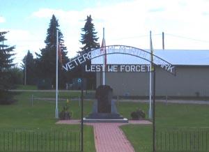 Veterans Memorial Park is where people can come and remember loved ones, relatives or friends who paid the supreme sacrifice in the First and Second World Wars. The park is bordered by a chain link fence on three sides and an ornamental steel fence facing the street with a wide gateway.