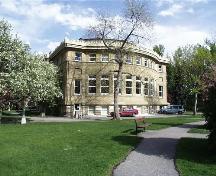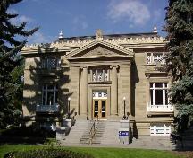 Memorial Park Library is a classically-inspired, early 20th century, two-storey sandstone building located on 1.93 hectares in Central Memorial Park in downtown Calgary. An east-facing portico, set a top a series of granite steps, is adorned with iconic columns and a skillfully-carved pediment, creating a dignified entry into the library. The building is topped with a low-hipped roof, and expertly executed decoration. The park on which the library sits contains several objects, including: