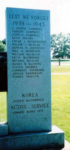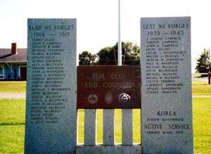 Erected by the Royal Canadian Legion, this memorial is dedicated to the local veterans of the First and Second World Wars and the Korean War.