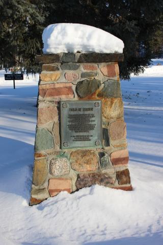 Block 9-A is the Veterans Fields of Honour where rows 1-12 reserved for the Royal Canadian Legion as per Yellowknife By-law No. 3965, adopted March 25, 1997.  The cairn is four sided, made of rocks and tapers from smaller to larger, from top to bottom.  The top of the cairn is comprised of flat stones that overhangs the edges.  The cairn has a metal plaque on the front and contains poppies in each of the four corners.  The date of the monument is unknown.