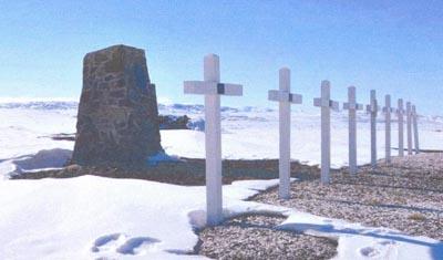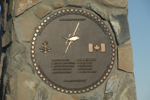 This memorial was dedicated to the crew of 405 Sqn Lancaster KB965 that were killed in the crash of their aircraft on July 31, 1950, about 600 meters from CFS Alert Station.