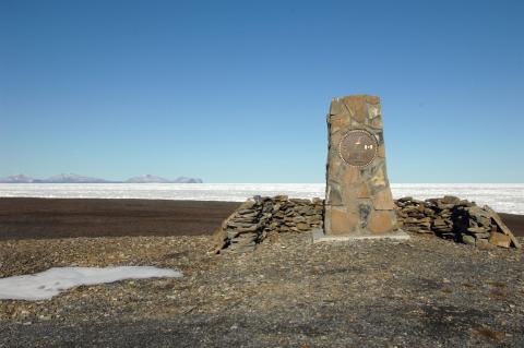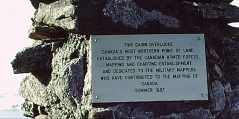 To end the debate of the location of Canada’s most northerly point, the Canadian Armed Forces Mapping and Charting Establishment determined Canada’s most northern point while conducting OP ARCTIC 87. A survey party established survey station 8759014 on the northern coast of Ellesmere Island and dedicated this memorial in memory of Military Mappers.
