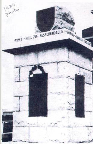 Erected in the early 1930s, this memorial is dedicated to the local war dead of the First World War. It is cared for by members of Royal Canadian Legion Branch No. 26 (Col. Moore).