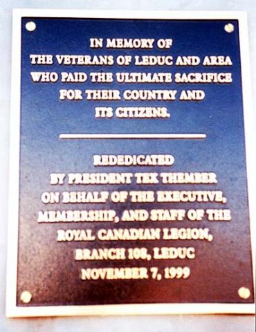 IN MEMORY OF THE VETERANS OF LEDUC AND AREA WHO PAID THE ULTIMATE SACRIFICE FOR THEIR COUNTRY AND ITS CITIZENS.
