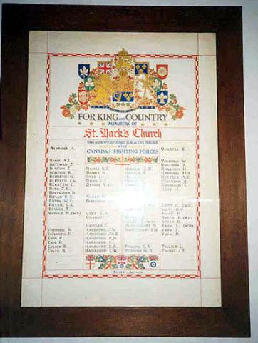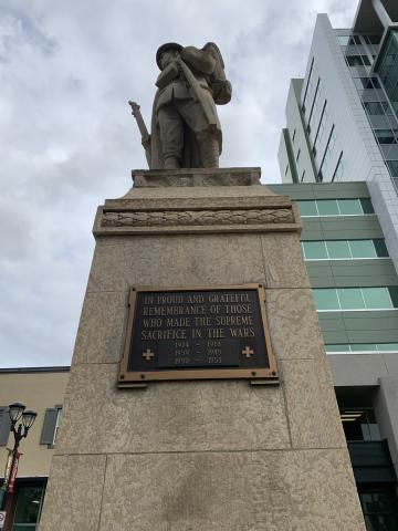 Parchment rolls with the names of those killed in the First World War were placed in a copper tube in the pedestal. Another roll lists the names of all those from Red Deer and district who served in the First World War. In 1949, the bronze plaque on the cenotaph was updated to include those who died during service in the Second World War. In 1988, the plaque was updated to include those who died in the Korean War.