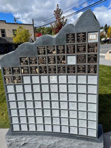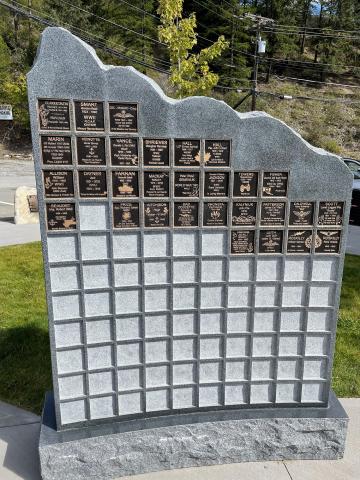 The Kimberley Cenotaph and Kimberley Veteran Memorial Park were unveiled on July 8, 2017. A Veterans group, Military Ames, realized the old cenotaph was in need of being replaced, as it was crumbling and had moss growing on it. They approached the City of Kimberley about a vacant lot downtown, presented their plans for a Memorial Park and cenotaph, and the City dedicated the land to them. Military Ames received several grants and assistance, including from Kimberley District Heritage Society, to construct the Park. The memorial commemorates Canada’s World Wars participation, peacekeeping efforts and Canada’s Vietnam War Veterans.