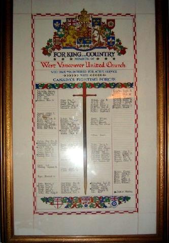 This roll of honour lists the members of the West Vancouver United Church who volunteered for service in the Second World War.