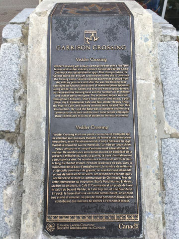 This aircraft, a CF-5 fighter aircraft formerly flown by the Canadian military, marks the location of Fulton Field, an airfield dedicated on 29 May 1944 to the memory of Wing Commander John Fulton, DSO, DFC, AFC, and the local veterans of the military air forces.