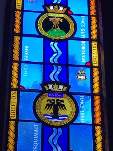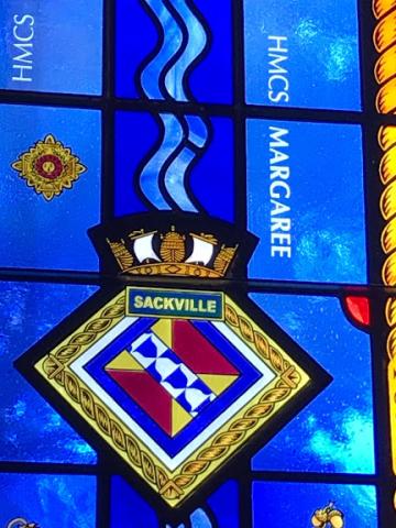 This stained glass window, The Royal Canadian Navy Centennial Memorial Window 2010, at St. Paul’s Anglican Church was unveiled in 2010 for the Official Naval Centennial Project, to whom it is dedicated.