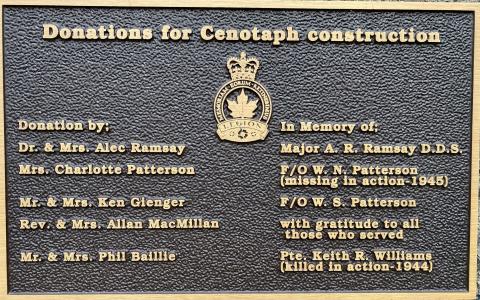 This memorial, erected by Royal Canadian Legion Branch No. 94, is dedicated to the local war dead of the First and Second World Wars and the Korean War.