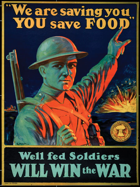 Canadians on the home front were expected to do their part in the war effort too, as shown in this poster encouraging people not to waste food.