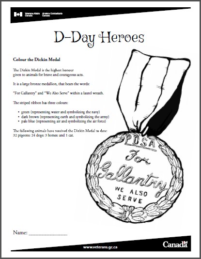 - Read about and colour a picture of the Dickin Medal which is awarded to brave animals.