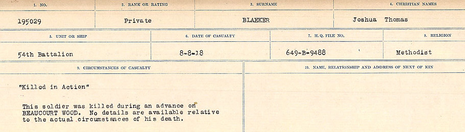 The village of Beaucourt is about 18 kilometres south-east of Amiens and 5 kilometres east of Moreuil.