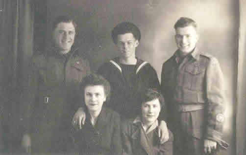 Sid, Drew, [cousin in the RN], and I were roaming around Aberdeen and Drew decided he would like a photo of the three of us. As we were about to enter the photographer's Drew caught hold of a couple of girls walking by and being a very good looking young sailor they could not refuse his charm. I have a picture of Sid, Drew and I plus two Aberdeen girls, identity unknown, and we never did know who they were.