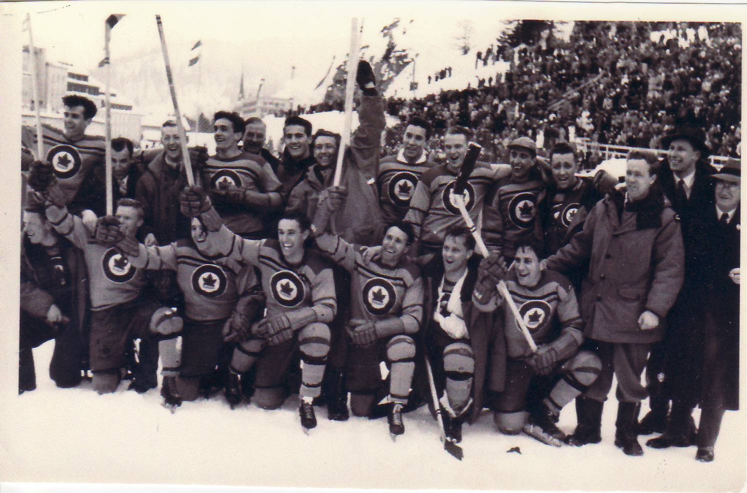Less than three years after the end of the Second World War, the Winter Olympic Games were held in St. Moritz, Switzerland. Many of the players on the Royal Canadian Air Force Flyers hockey team that competed at the Games were Veterans of the war.
