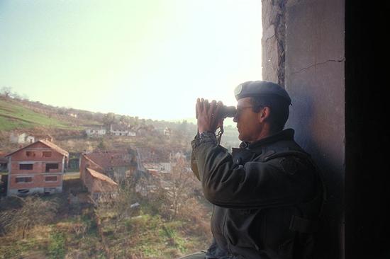Le Caporal Richard Néron assure la sécurité à un poste d'observation à Srebrenica. Photo : Ministère de la Défense nationale