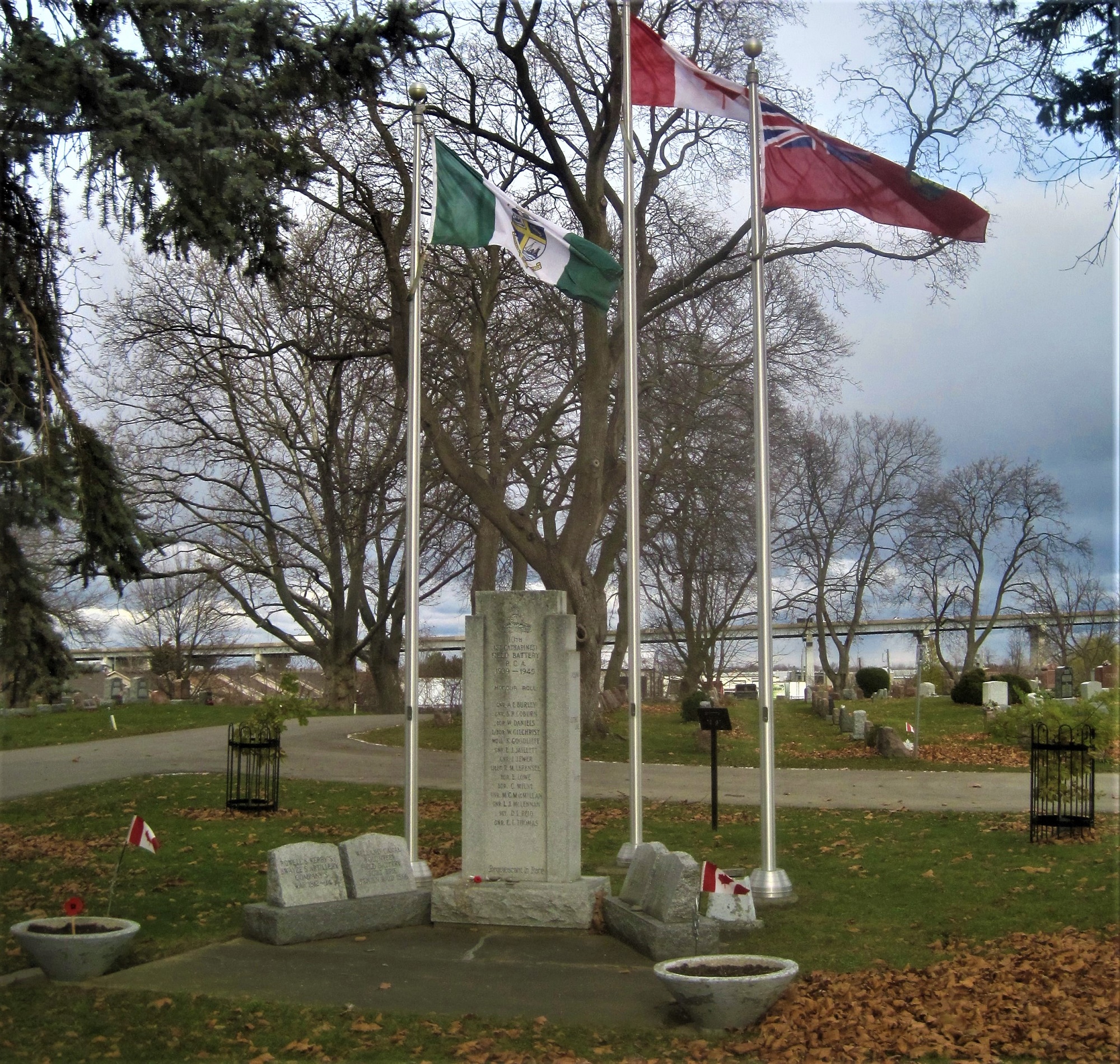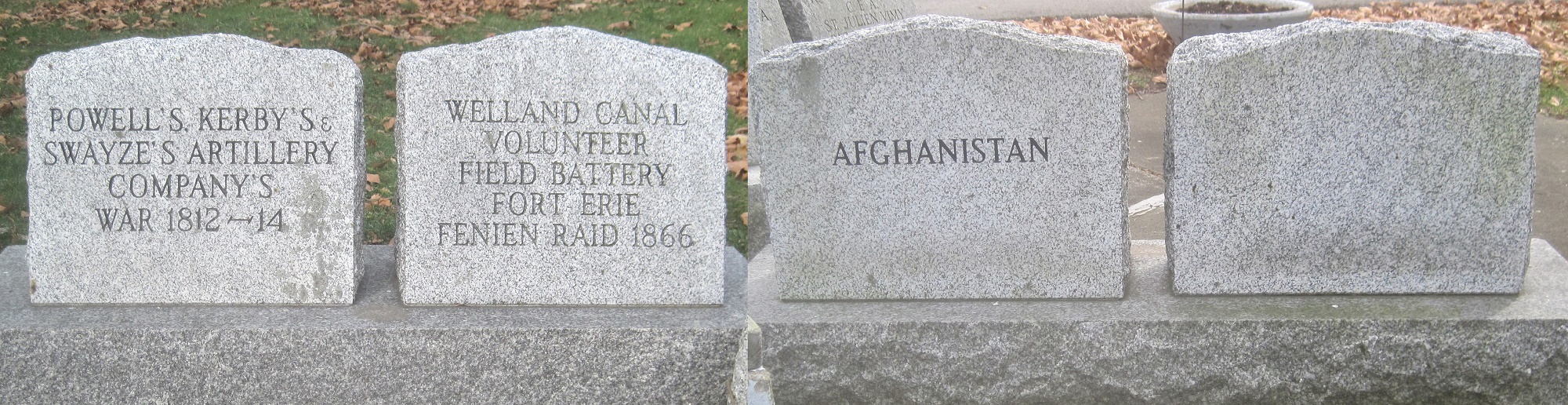 Le cénotaphe de la 10e Batterie de campagne a été érigé par la 10e Batterie de campagne de StCatharines, Artillerie royale canadienne. Il a été dédié le 6 décembre 1964 aux membres de l’Artillerie royale canadienne et de leur unité d’artillerie ancestrale qui sont morts en service. Ce 6 décembre était le 25e anniversaire de l’entrée en guerre de la Batterie.
