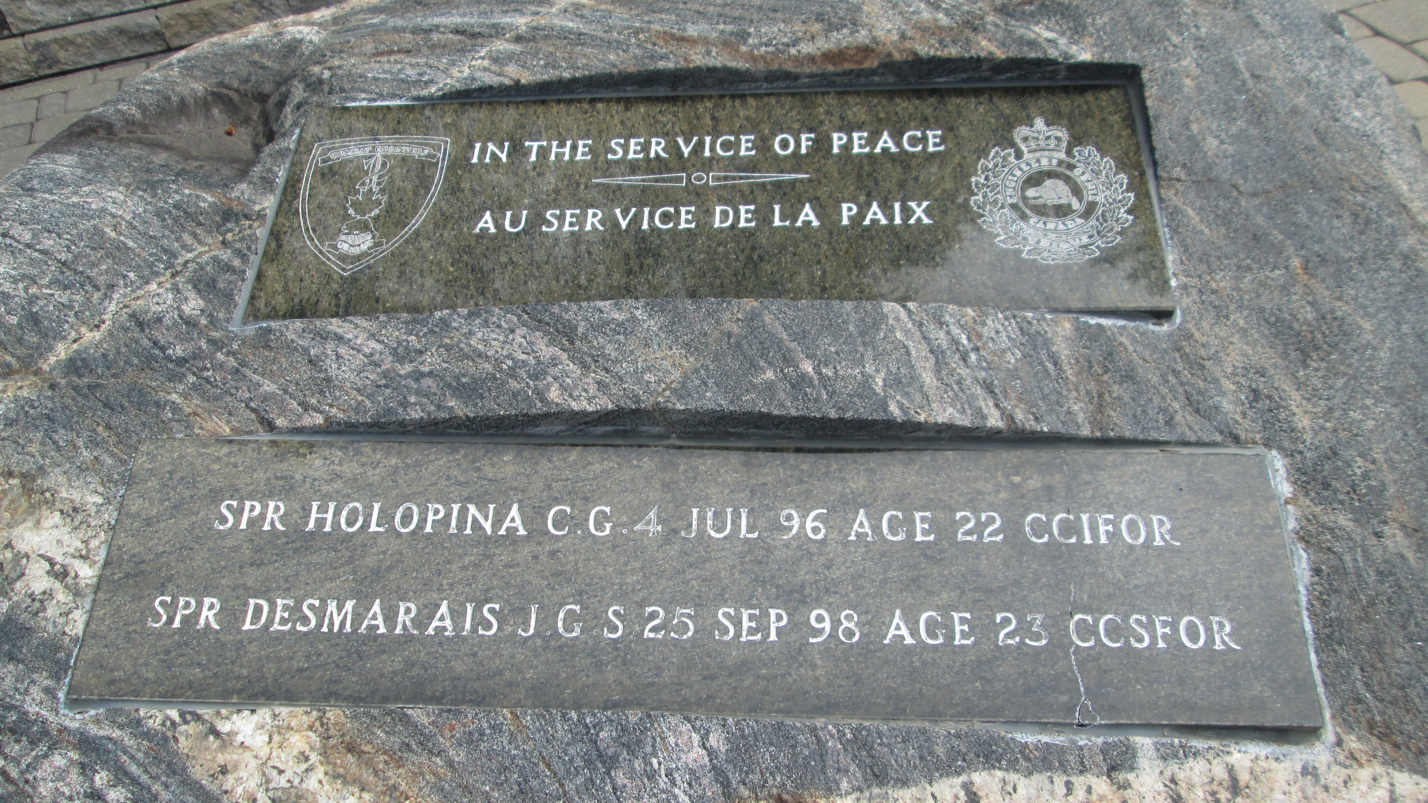 Ce monument a été dévoilé à la mémoire des membres du 2e Régiment du génie de combat (2 RGC) qui sont morts pendant qu’ils servaient dans l’ancienne Yougoslavie.
