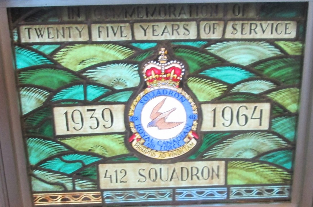 Ce vitrail commémore le 25e anniversaire du 412e Escadron. C’est le vitrail n° 2 (de deux) qui commémore cet anniversaire.