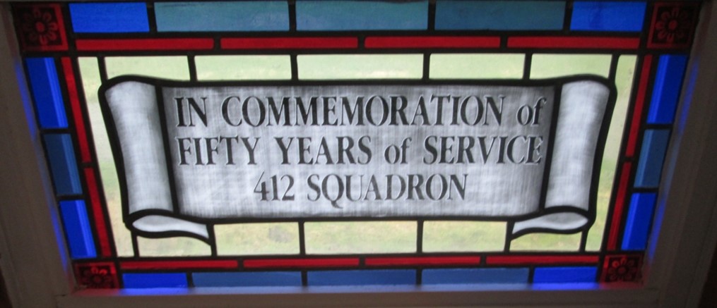 Ce vitrail commémore le 50e anniversaire du 412e Escadron. C’est le vitrail n° 2 (de deux) qui commémore cet anniversaire.