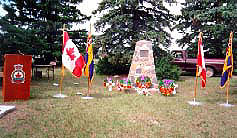 C’est M. Wellington Behrns, un maçon de la localité, qui a construit ce mémorial inauguré en 1927. La plaque a été ajoutée en 1961. Le mémorial est situé près du cimetière du village d’Abernethy. Depuis 1926, la filiale d’Abernethy souligne la journée des Décorations au cimetière en juillet de chaque année; ces cérémonies ont encore lieu de nos jours et n’ont été interrompues qu’entre 1942 et 1945. Le mémorial a été construit en 1960 à la mémoire des militaires et des civils qui ont perdu la vie pour défendre la liberté pendant les Première et Seconde Guerres mondiales et la guerre de Corée. C’est la filiale no 26 de la Légion royale canadienne qui en assure l’entretien. En octobre 1916, le conseil de la municipalité rurale a lancé un projet visant à prendre soin des soldats rentrés du front. H.T. Smith et H.H. Turner ont été chargés de répondre aux besoins de ces soldats ou de leur offrir au moins leur amitié. Les villages d’Abernethy et de Balcarres, de même que la population de Lolie, avaient chacun un comité de la Returned Soldiers’ League. En mai 1917, le comité rural a suggéré d’amalgamer toutes ces unités afin de pouvoir mieux s’occuper des hommes de retour au pays. C’est ainsi que deux ligues ont été constituées, et la ligue d’Abernethy s’est fusionnée à la Great War Veterans Association en 1920. Six ans plus tard, la GWVA s’est jointe à la Légion canadienne de la British Empire Service League, devenue la Légion royale canadienne en 1961. À partir de 1926, la filiale d’Abernathy a organisé des cérémonies au cimetière à l’occasion de la journée des Décorations; ces cérémonies ont eu lieu chaque année sauf entre 1942 et 1945. Les cérémonies de la journée des Décorations avaient lieu en juillet. La dernière s’est déroulée en 1997. Leur avenir est incertain à cause de l’âge des anciens combattants de la localité et de leur nombre décroissant en raison de nombreux décès.