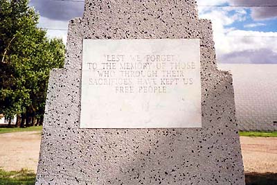Ce monument, érigé par la filiale no 76 de la Légion royale canadienne, est dédié aux victimes de guerre.