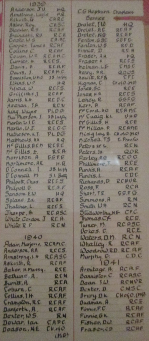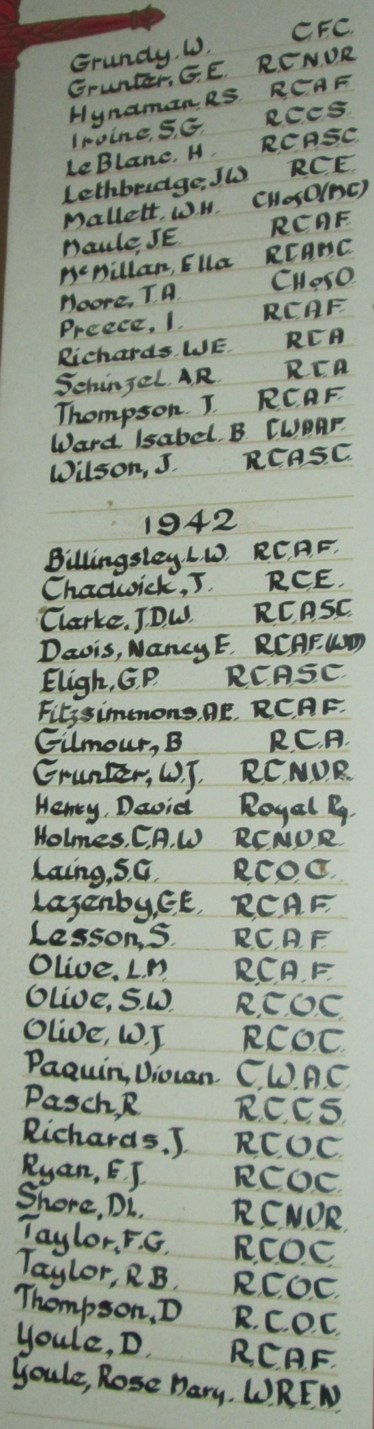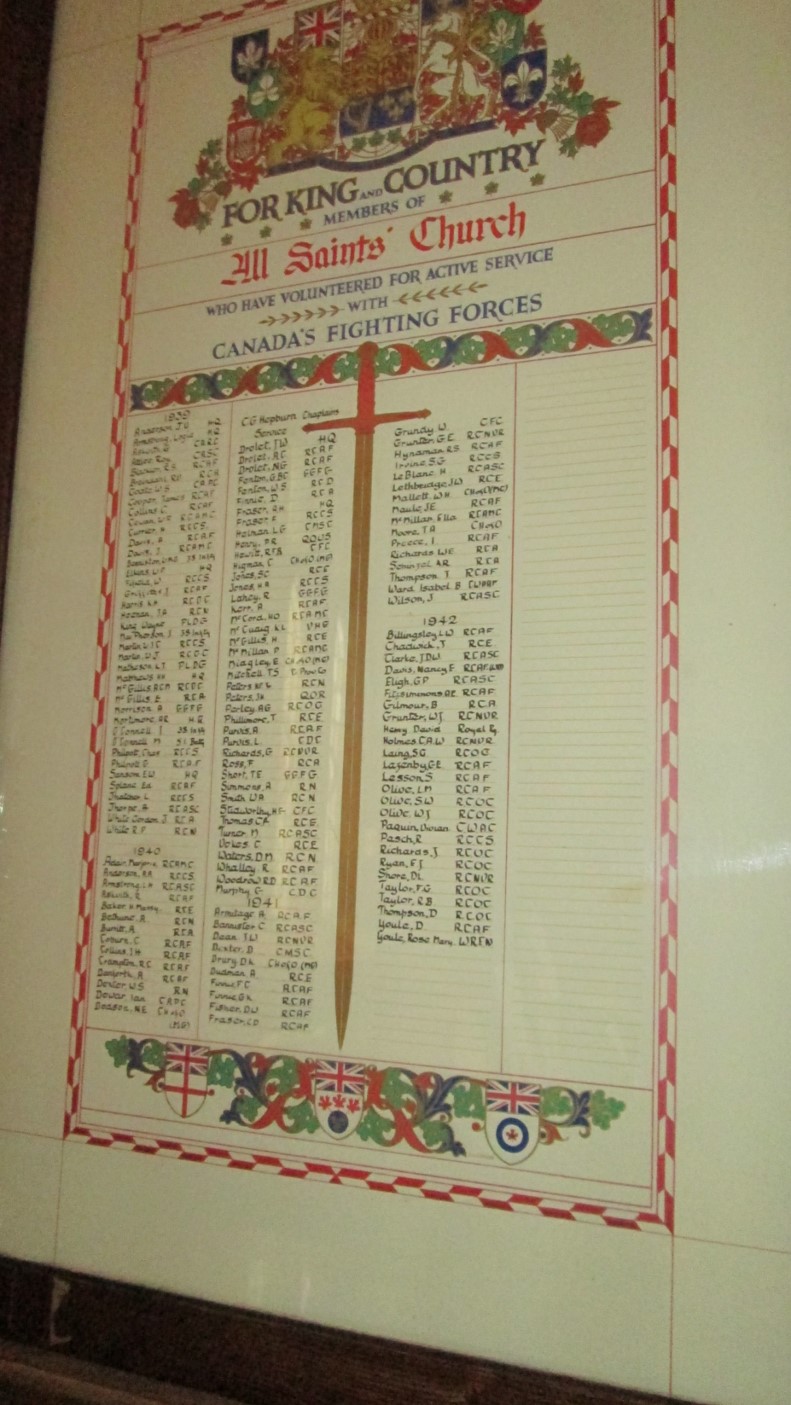 Tableau d'honneur de la Deuxième Guerre mondiale de l’Église anglicane All Saints