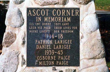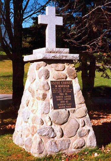 Ce tumulus est dédié à la mémoire des citoyens de Ascot Corner morts des deux grands conflits mondiaux.