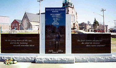 Dédié le 25 juillet 1998, cette muraille commémorative a été érigée par l'association régimentaire du North Shore (New Brunswick) en hommage aux citoyens morts au combat lors des Première et Seconde Guerres mondiales.