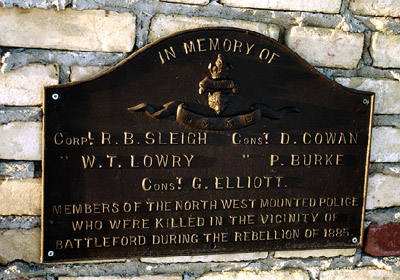 Ce mémorial est dédié à ceux qui ont été tués pendant la rébellion de 1885. Il a été érigé par les citoyens de Battleford.