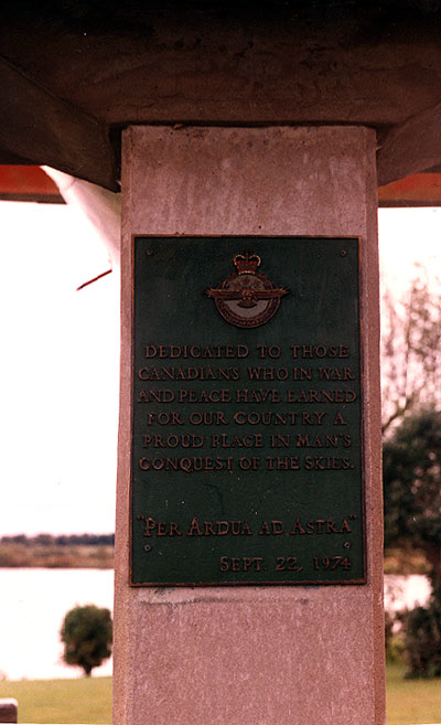 L’avion T33 de la 424e Escadre a été déplacé de la BFC Mountain View à Cornwall en 1974. Le pylône, fait de béton armé massif avec une large semelle, a été construit sur place par un entrepreneur local. Membre actif de la 424e Escadre, Frank (Doc) Roberts, ancien arrimeur de l’ARC, s’est porté volontaire pour concevoir et installer le berceau au sommet du pylône et a supervisé l’installation de l’avion.