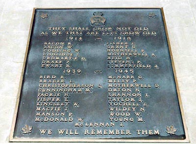 Ce monument, érigé par la filiale no 122 de la Légion royale canadienne, est dédié aux citoyens de la localité morts pendant la Première et la Seconde Guerres mondiales.