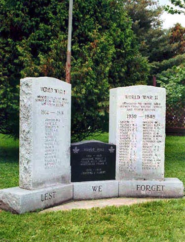 La Légion royale canadienne dédie ce monument aux anciens combattants et aux victimes de la Première et de la Seconde Guerres mondiales originaires de la localité.