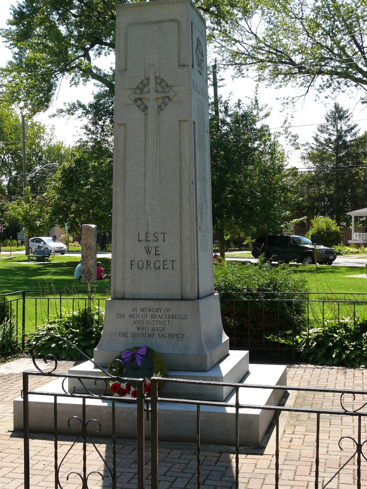 Le cénotaphe de Bracebridge a été érigé en 1959 à la mémoire des morts des Première et Seconde Guerres mondiales et de la guerre de Corée. Il se trouve dans le parc Memorial.