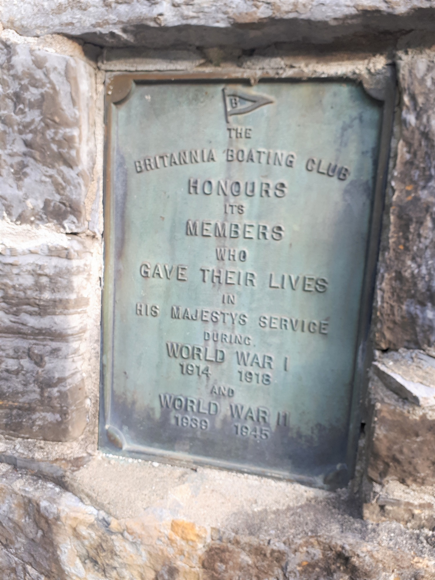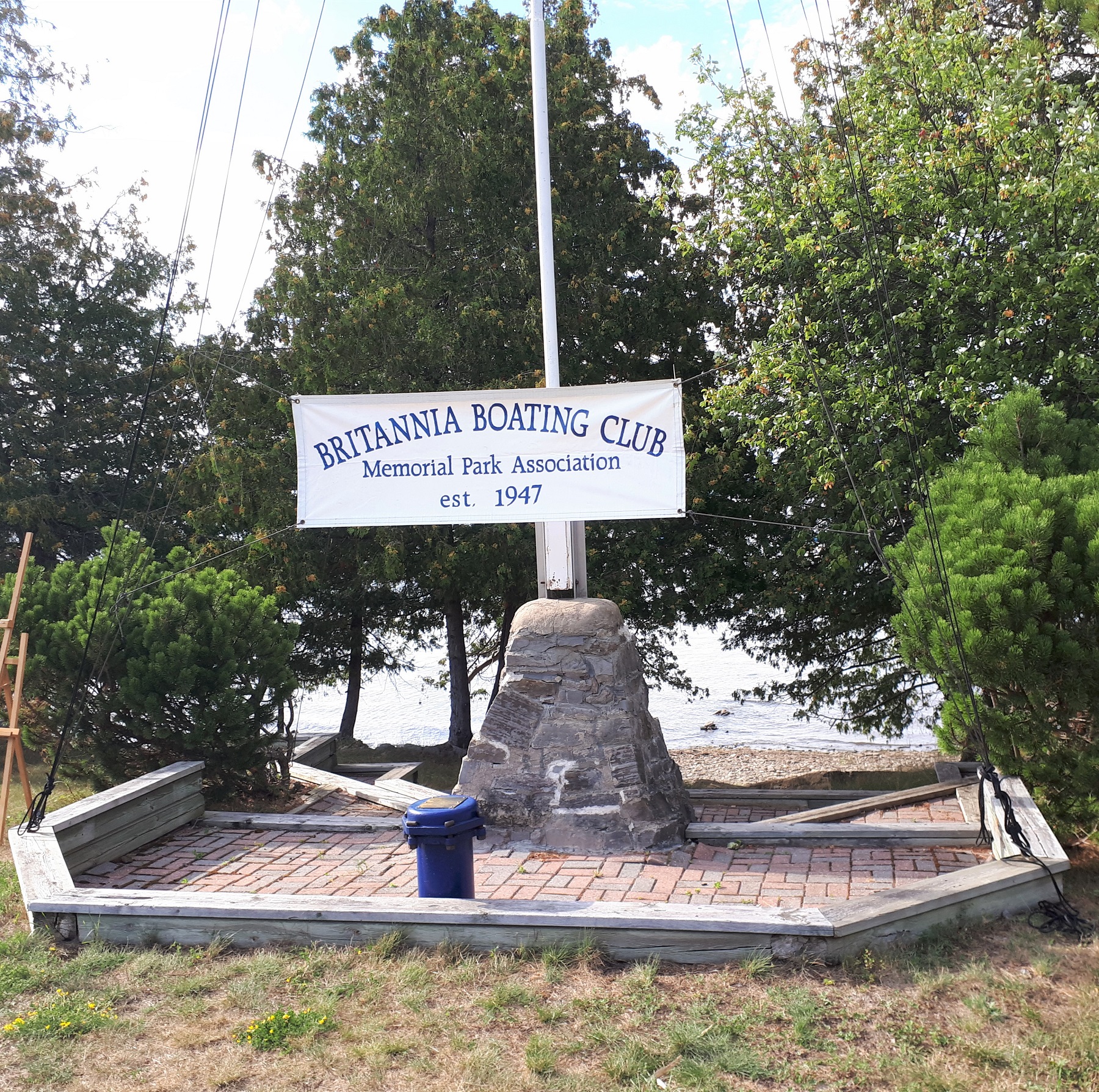 Le cairn commémoratif du Brittania Boating Club est unique, car il se trouve discrètement près d’un bosquet dans le parc commémoratif du Brittania Boating Club, au milieu du bassin de navigation du club. Il a été inauguré en 1949.
