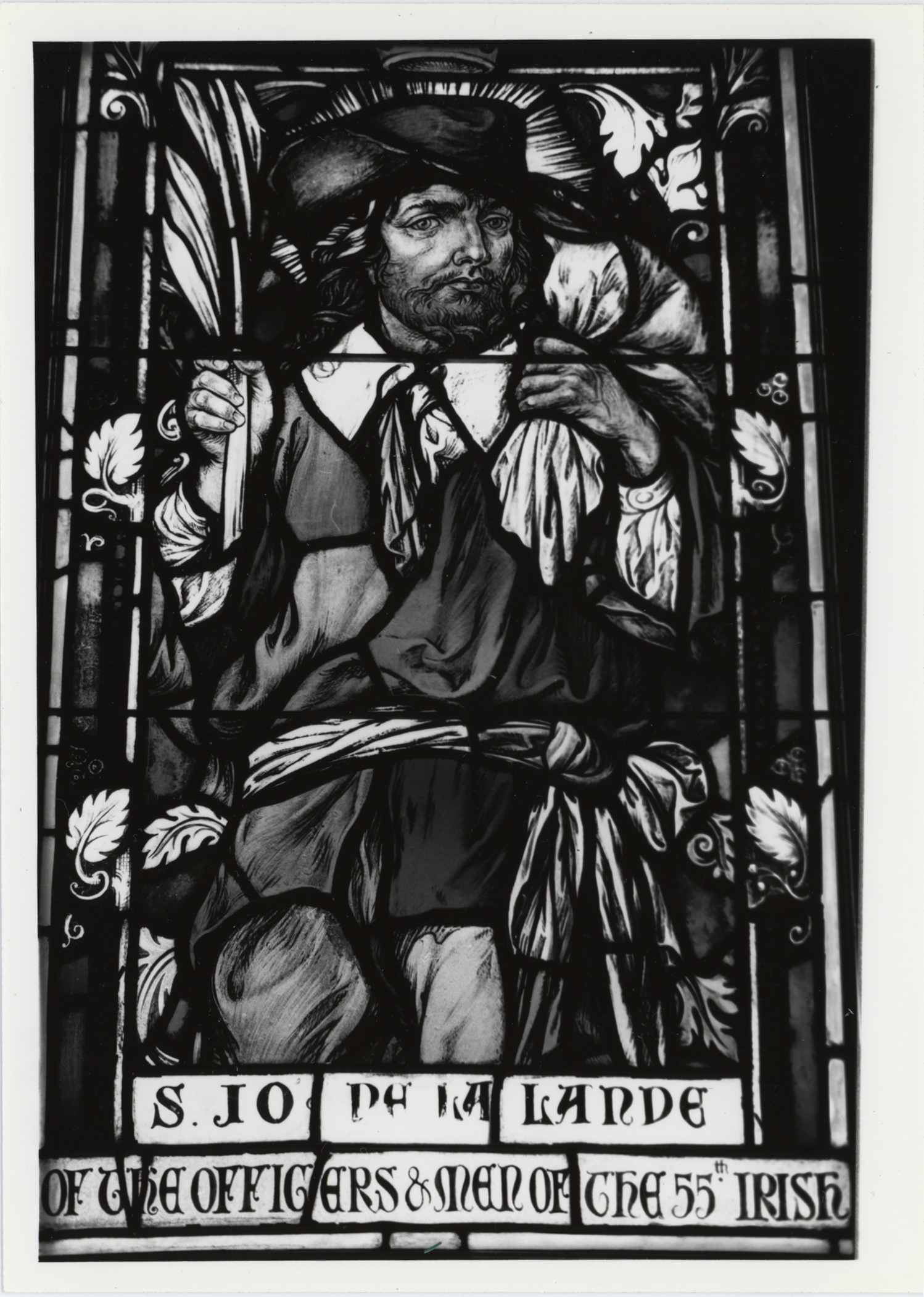 Le jour du Souvenir 1933, quelques mois après l’ouverture de la chapelle, les drapeaux des Irish Canadian Rangers de la Duchesse de Connaught ont été déployés, et le vitrail a été béni et inauguré. Les Irish Canadian Rangers étaient un régiment formé à Montréal en 1914, dont les racines provenaient de Loyola. Plusieurs centaines d’hommes sont morts au combat pendant la Première Guerre mondiale, et lorsque le régiment a été dissous dans les années 1920, les couleurs du régiment ont été données à Loyola. Les drapeaux ont été suspendus dans la chapelle jusqu’à ce que l’un d’eux soit volé à la fin des années 1970. Il n’a jamais été retrouvé.