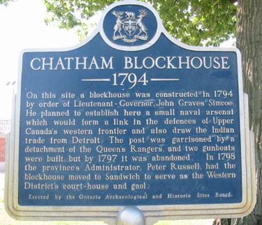 Cette plaque rappelant l’emplacement du blockhaus de Chatham en 1794 a été posée en 1958.
