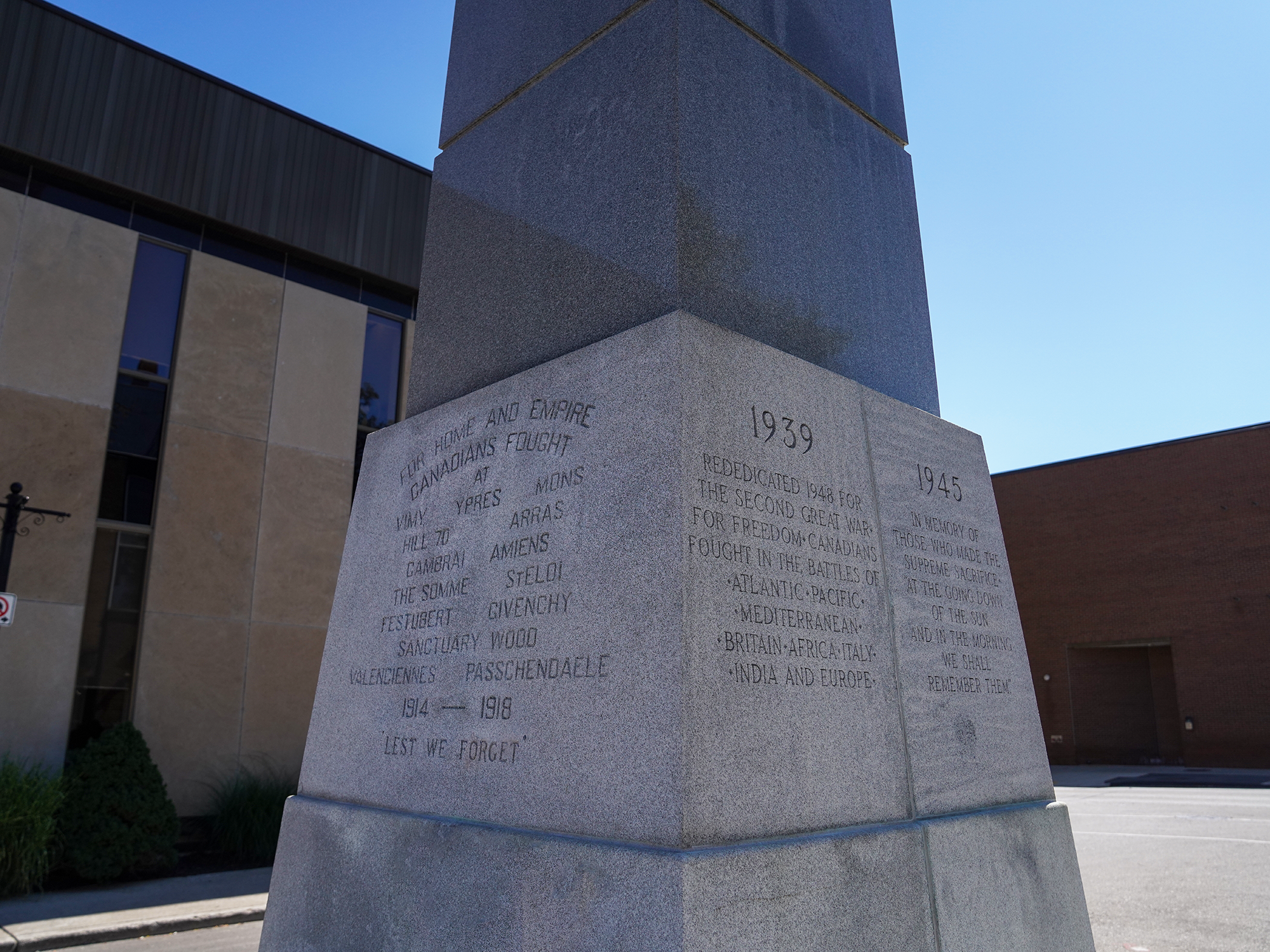 Les travaux d’excavation commencèrent le 9 octobre 1923 quand l’entrepreneur C. H. Colby déplaça les matériaux pour le monument. Une fois terminée, la structure coûterait 15 000 $ et pèserait 190 tonnes. La construction de celui-ci se termina le 8 novembre, juste à temps pour le dévoilement par le lieutenant-gouverneur Harry Cockshutt.