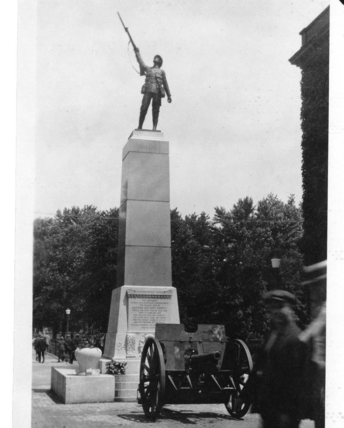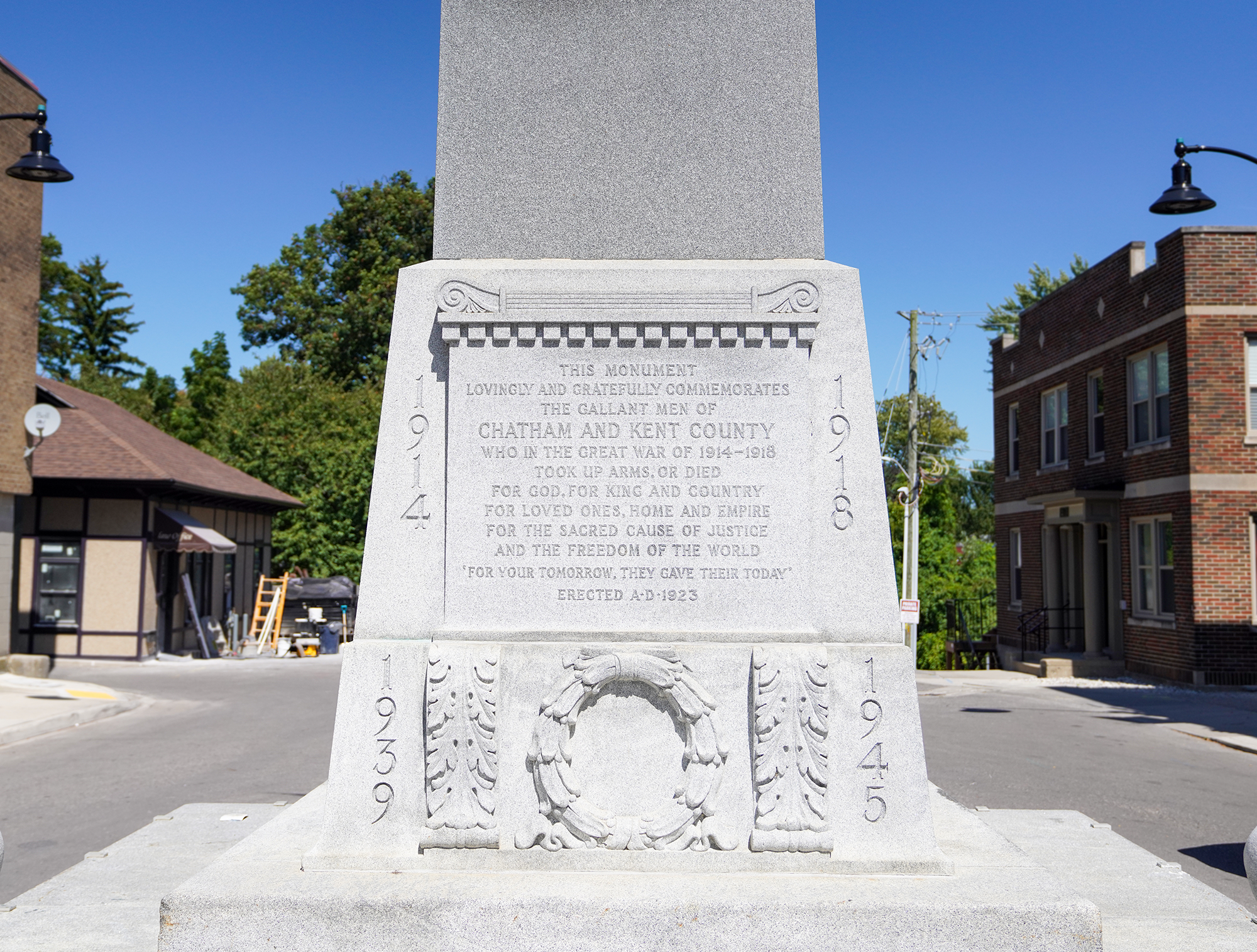 À Chatham, un petit groupe de citoyens avait déjà commencé à planifier la construction d’un monument commémoratif des soldats afin d’honorer ceux qui avaient combattu au cours de la « guerre qui mettrait fin à toutes les guerres ». J.D. Ellwood avait proposé d’ériger un monument à la mémoire des hommes de la ville et du comté à Chatham. Il y eut aussi un mouvement en faveur de l’acquisition de souvenirs de guerre allemands, et celle-ci eut lieu en 1925.