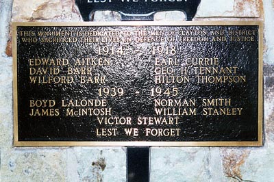 Ce cénotaphe a été dédié le 11 novembre 1988 aux citoyens du district de Clayton qui se sont sacrifiés au nom de la justice et de la liberté. En 1997, Madame Thelma Gourlay demanda le soutien de la filiale no 240 de la Légion royale canadienne à Almonte pour l’érection d’un monument dans le village de Clayton en hommage aux hommes de la région morts au combat.