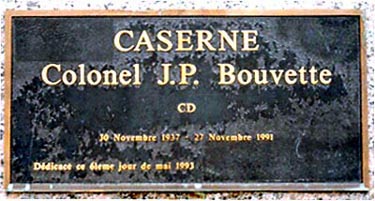 Ce mémorial, inauguré en 1993, commémore le colonel J.P. Bouvette, CD, qui vécut de 1937 à 1991.