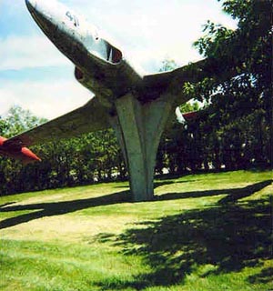 Cet avion de chasse CF-100, transformé en mémorial, a été utilisé par l'Aviation royale du Canada durant les années 1950 et 1960.