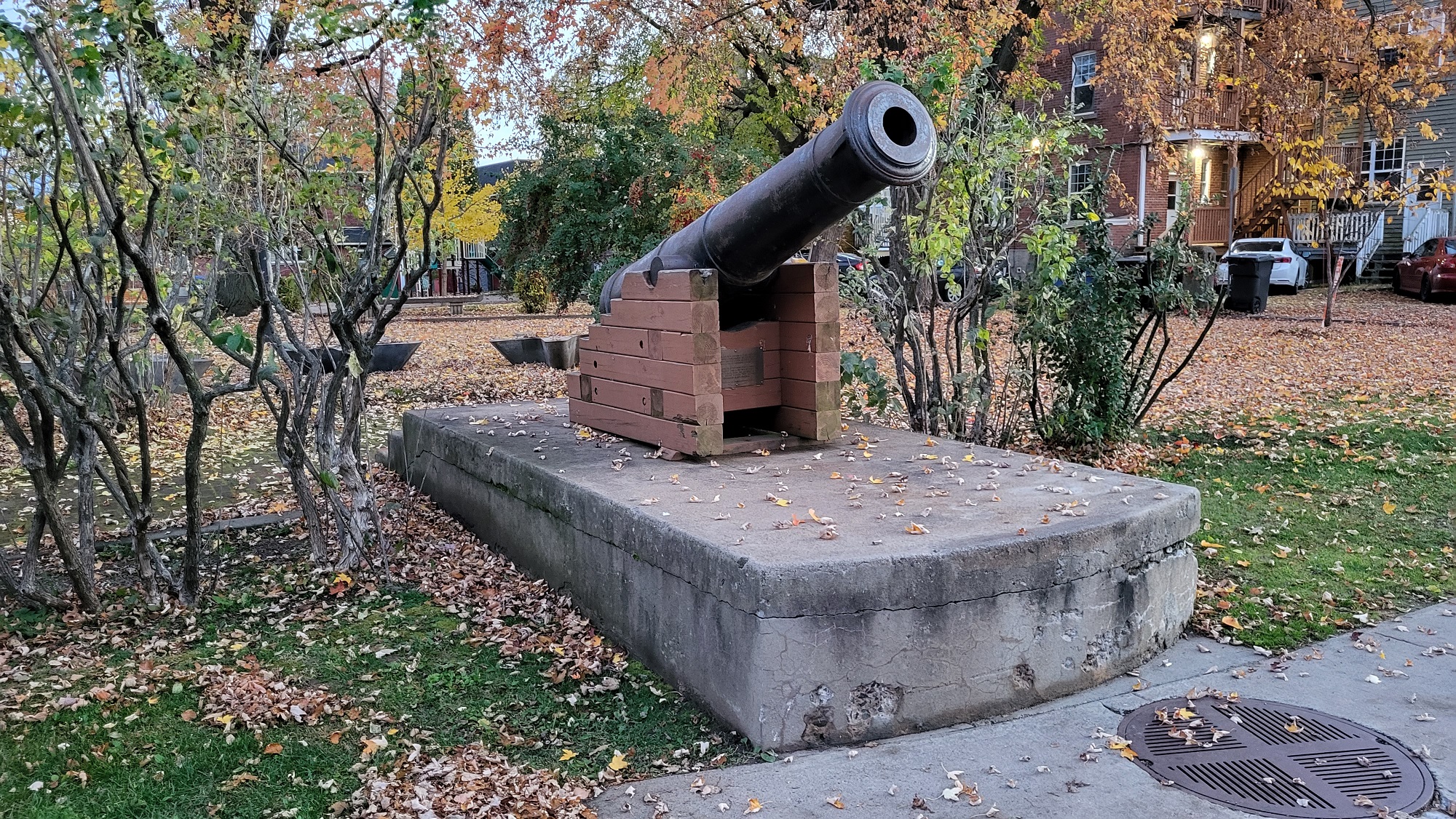 Érigé par la Ville de Trois-Rivières, ce mémorial est dédié aux citoyens de Trois-Rivières pour leurs efforts de guerre lors de la guerre de Crimée, 1854-1856. Cette caronade, coulée en Russie en 1828, fut vraisemblablement rapportée en 1856 par des soldats trifluviens ayant servi sous le drapeau britannique durant la guerre de Crimée.