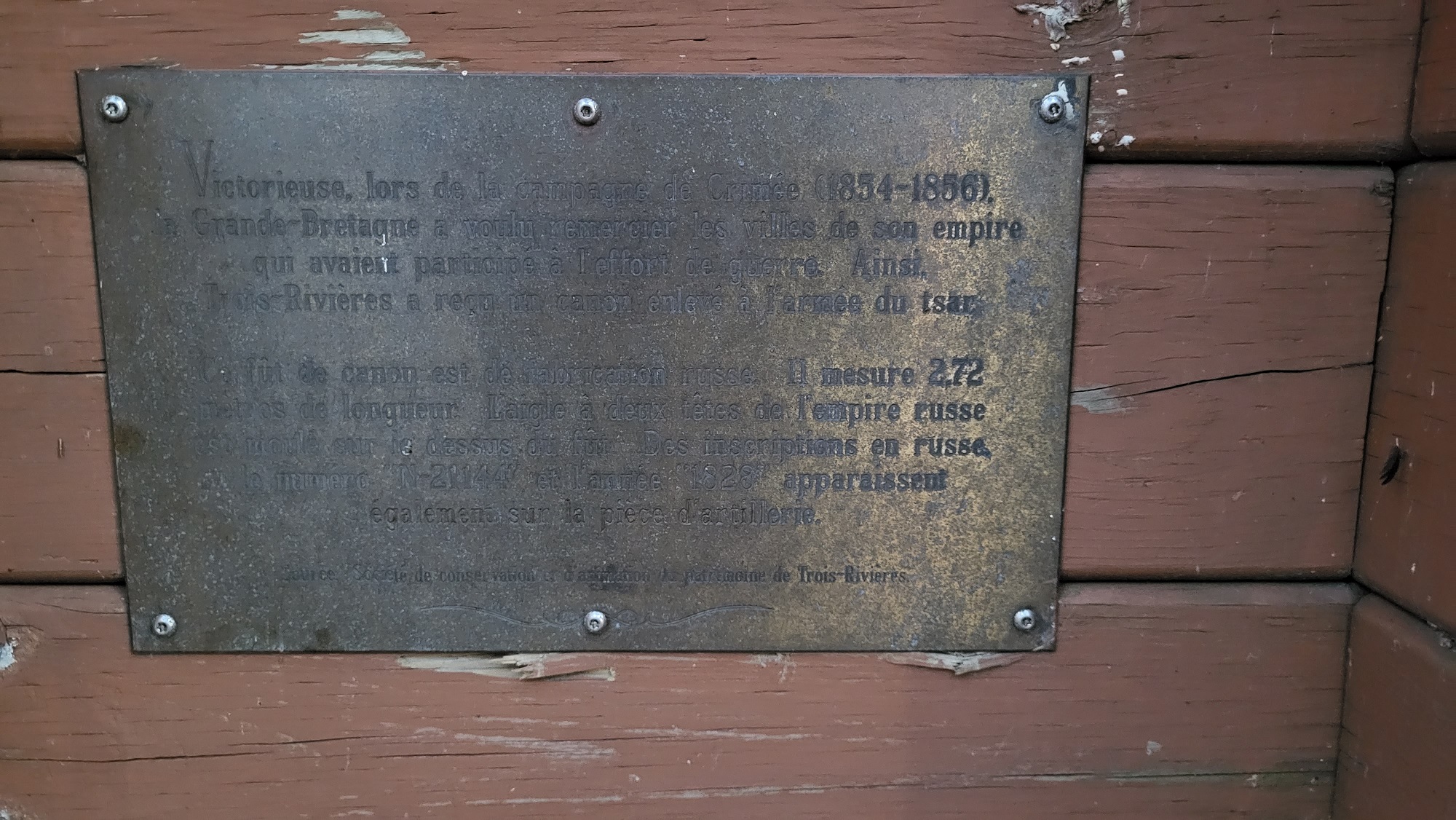 Trois-Rivières a reçu un canon enlevé à l'armée du tsar.