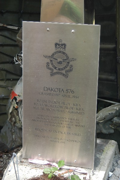 Le 19 avril 1944, l'écrasement d'un Dakota 576 sur un rocher a entraîné la mort de deux membres d'équipage, soit les Sous-lieutenants d'aviation J.M. Talbot et T.S. Wordlow. Pour sa part, le Sgt T.R. Moss, mitrailleur radiotélégraphiste, a été retrouvé le jour suivant, vivant, bien qu'en état de choc.